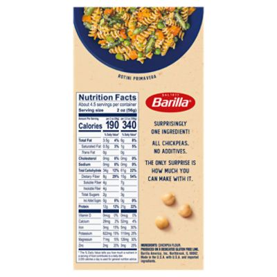Bring a large pot of water to a boil. Its called Barilla Chickpea Rotini and its part of Barillas line of Legume pasta. Guiding Stars is a nutrition navigation system created to help you quickly identify more nutritious recipes.